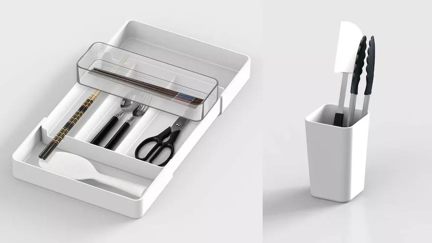 06-可以伸縮的廚房收納盒,可以適應(yīng)不同抽屜的尺寸,并擁有多模塊擺放形式和配件by: NITORI