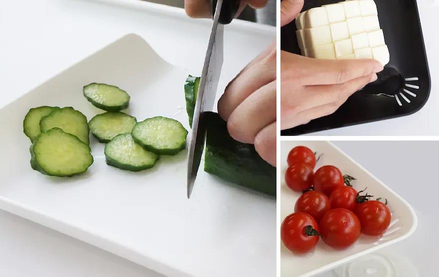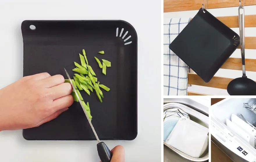 02-切菜板邊緣的翹起和打孔是干嘛的?切菜完成可以用來濾水,一舉兩得by: DAISO