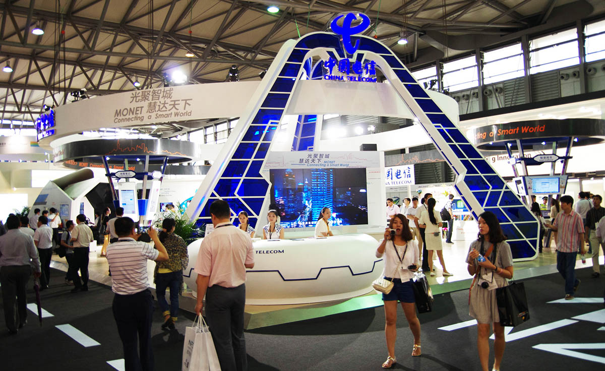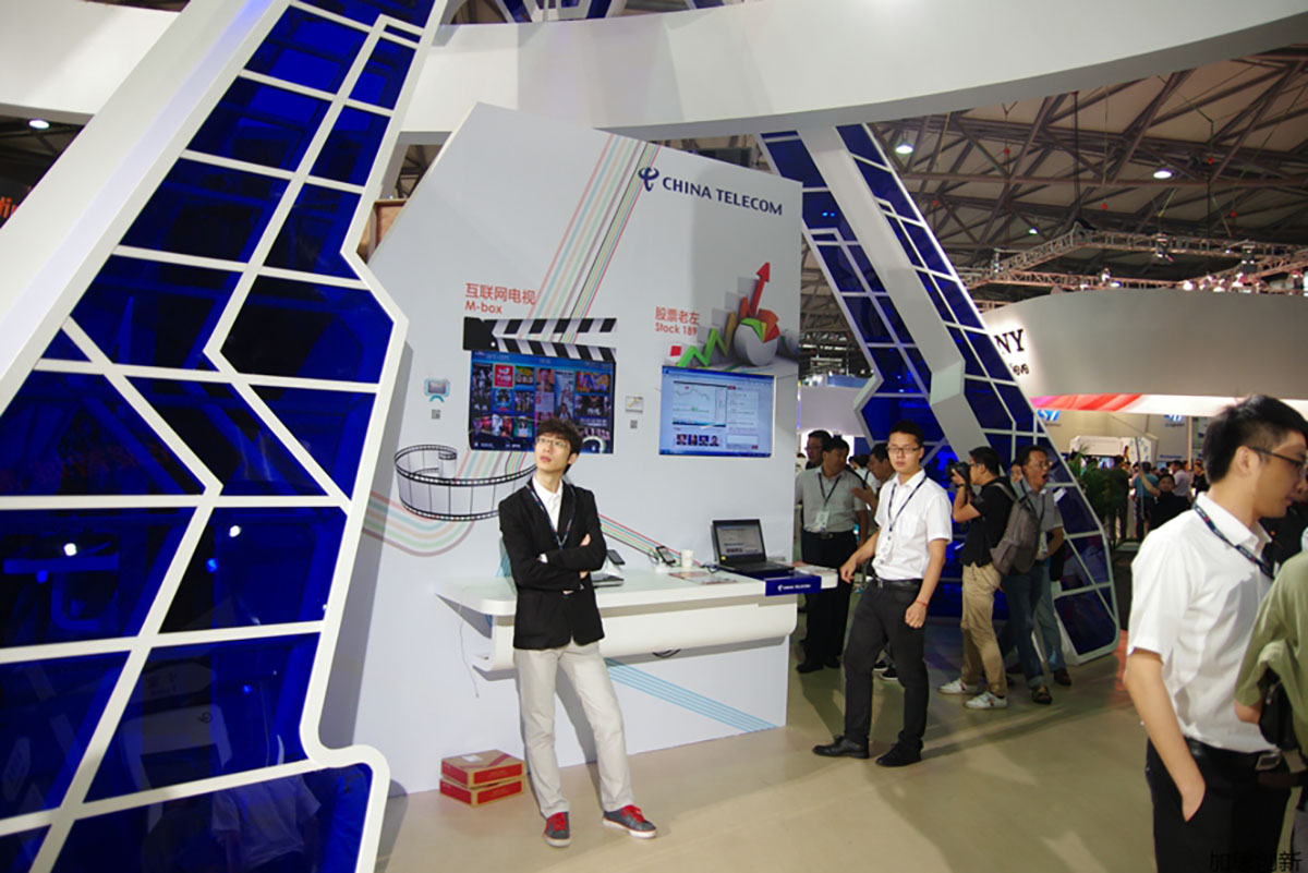 電信集團受邀參加亞洲移動通信博覽會,分為智慧城市區域、NFC區域、智慧家庭區域、車聯網區域、智慧城市沙盤區域、終端展示區域。整體展位強調視覺沖擊力,同時挖掘吸引觀眾眼球的設計亮點,給觀眾帶來耳目一新的感受和品質卓越的深刻印象,通過LED、多媒體互動等元素來吸引觀眾,聚集人氣。