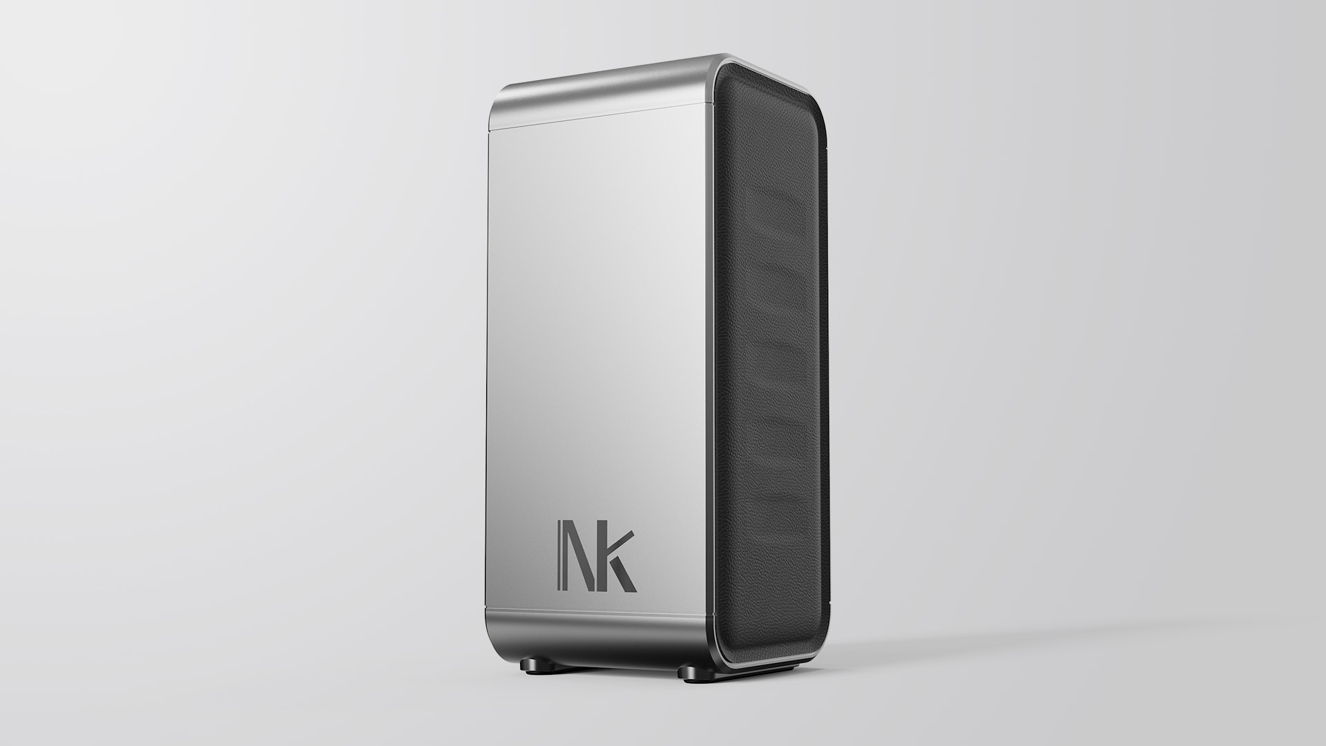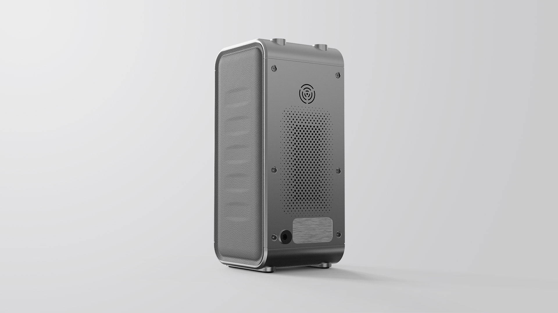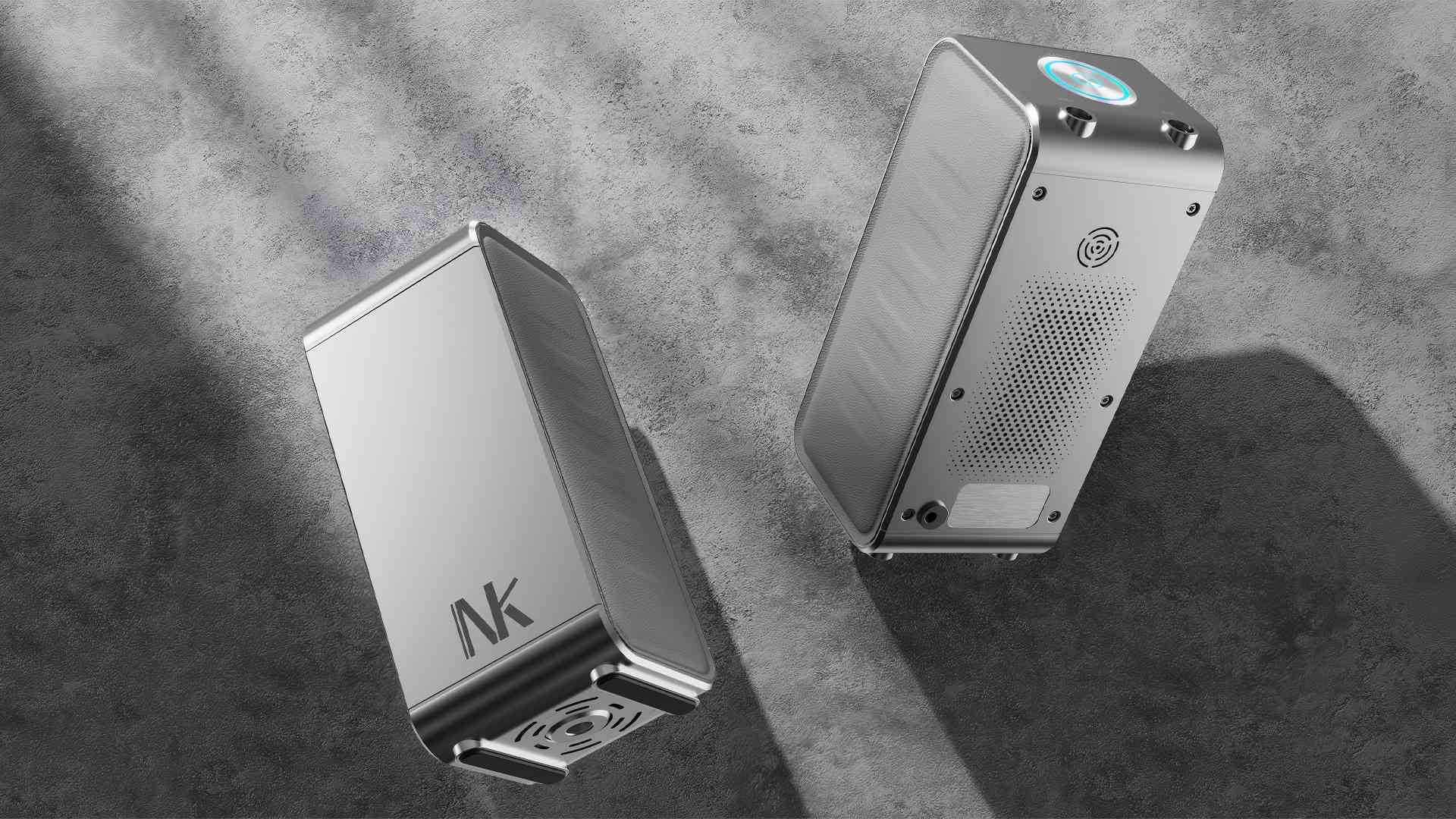 福軒采集器,整體極簡化矩形倒角設計,采用拉絲,CD紋,斜角,陽極氧化工藝為產品帶來工業感。利用包膠元素為產品提升親和力。藍色燈帶點綴產品,提升科技屬性。內部通過風道設計解決產品散熱問題。