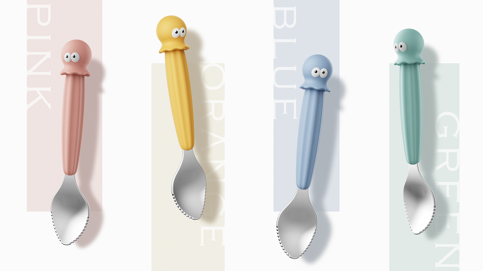 可愛的章魚造型,舒適的手握肌理,讓媽媽使用時(shí)更有握感,可愛萌趣的造型更能吸引寶寶的注意,讓寶寶愛上吃輔食。更多顏色配色,讓產(chǎn)品彰顯不通可愛。